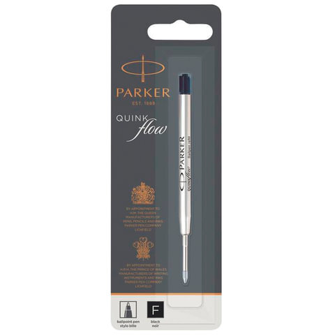 Стержень шариковый PARKER "Quinkflow", металлический, 98 мм, узел 0,8 мм, блистер, черный, 1950367