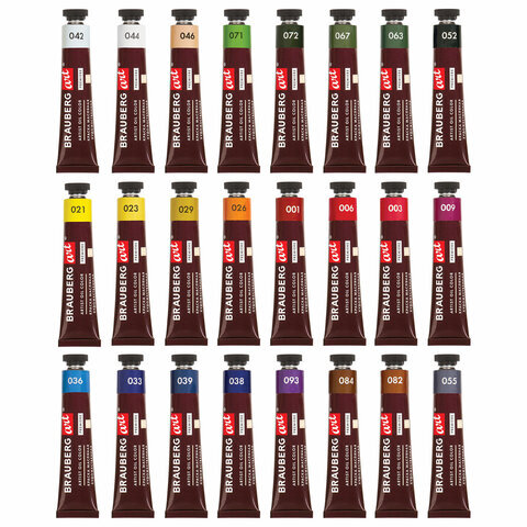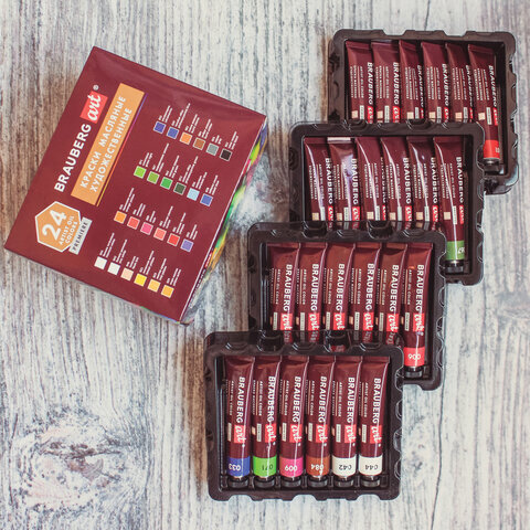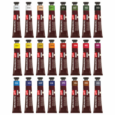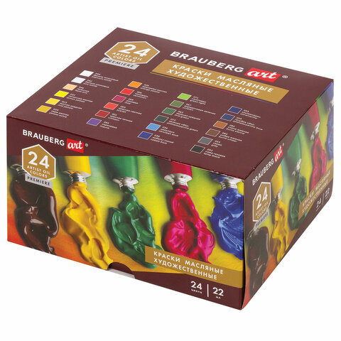 Краски масляные художественные BRAUBERG ART PREMIERE, 24 цв. по 22 мл, в тубах, 191460