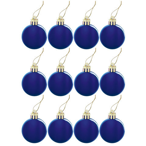 Шары ёлочные 12 шт., 4 см, "Solid Color", пластик, СИНИЕ, глянец, ЗОЛОТАЯ СКАЗКА, 591122