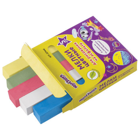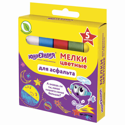 Мел для рисования на асфальте 5 штук, цветной квадратный, ЮНЛАНДИЯ "ЮНЛАНДИК И КОСМОС", картонная упаковка, 227446