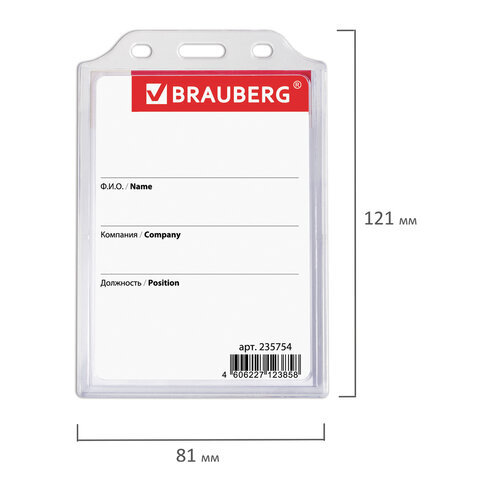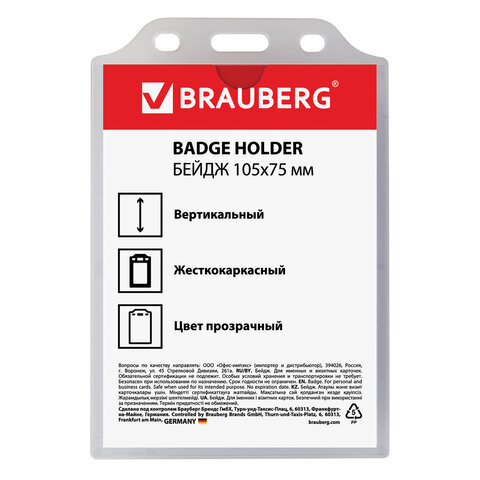 Вертикальный бейдж BRAUBERG для именной карточки предназначен для идентификации сотрудников в компаниях, а также на семинарах, тренингах, презентациях и других мероприятиях.
