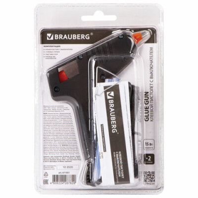 Клеевой пистолет 15 Вт для стержня 7 мм, с выключателем, BRAUBERG, в блистере, 671051