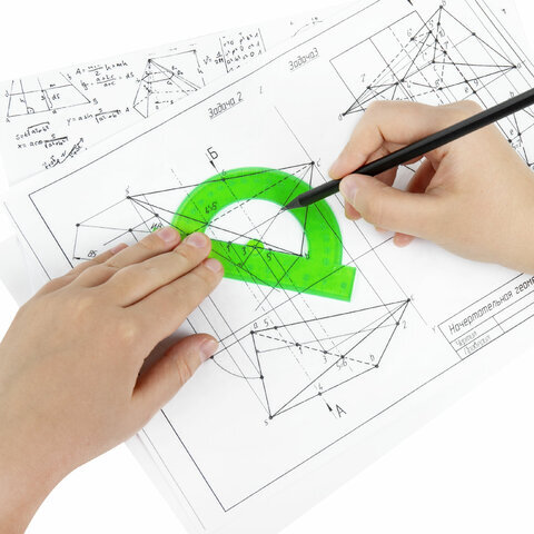 Прозрачный транспортир BRAUBERG предназначен для чертёжных и измерительных работ.