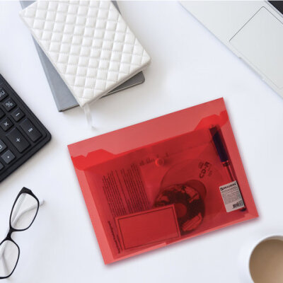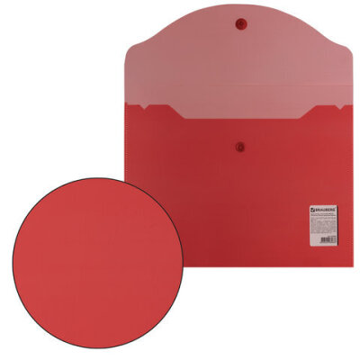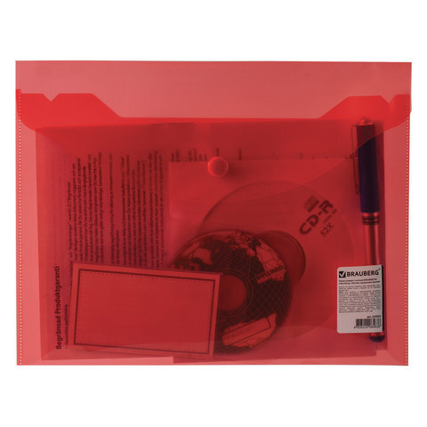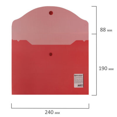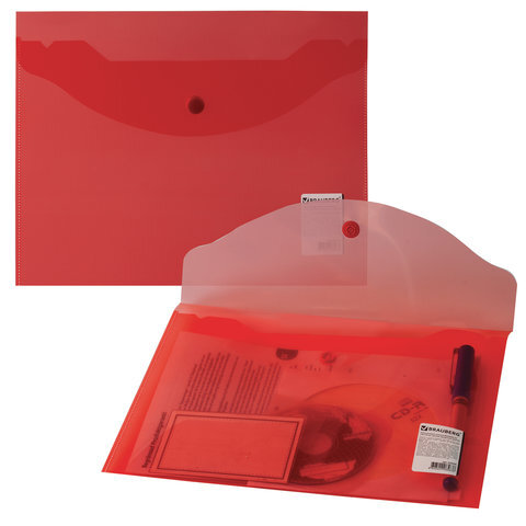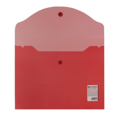 Папка-конверт с кнопкой МАЛОГО ФОРМАТА (240х190 мм), А5, прозрачная, красная, 0,18 мм, BRAUBERG, 224026