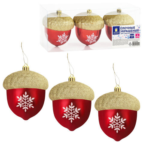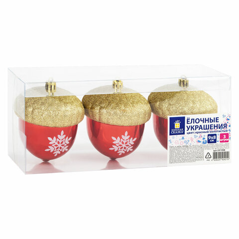 Украшение ёлочное "Желуди" 3 шт., 9х8 см, пластик, цвет: красный / золотистый, ЗОЛОТАЯ СКАЗКА, 591998