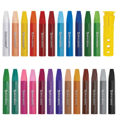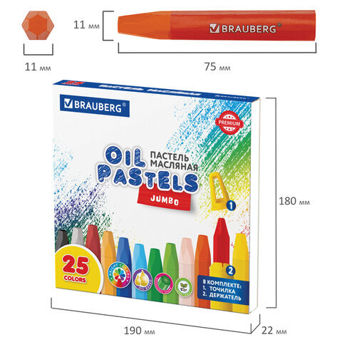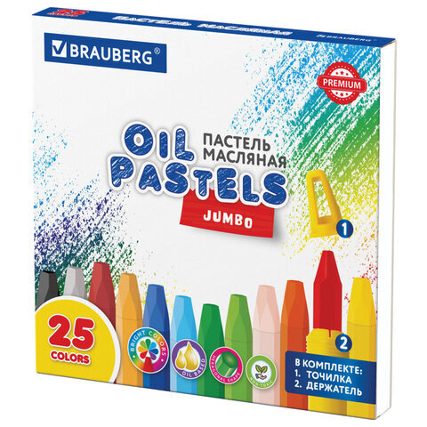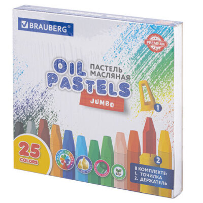 Пастель масляная восковые мелки утолщенные 25 цветов с точилкой и держателем, BRAUBERG PREMIUM, 272712