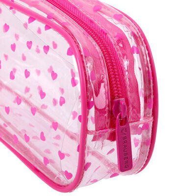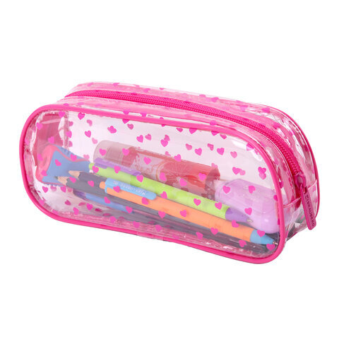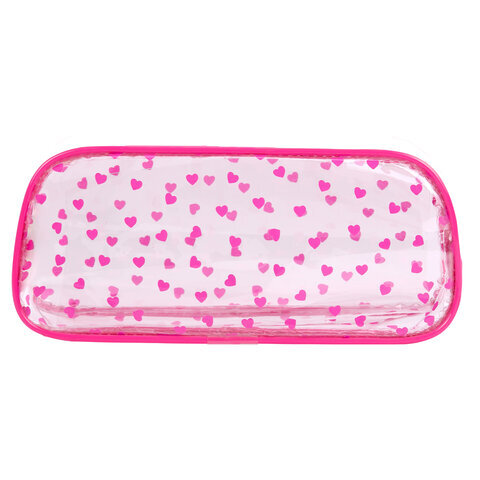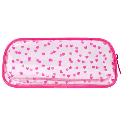 Пенал-косметичка BRAUBERG LUCENT на молнии, прозрачный, "Hearts", 21х5х9 см, 272345