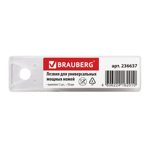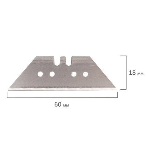 Лезвия для универсальных мощных ножей, 18 мм, BRAUBERG, КОМПЛЕКТ 5 ШТ., форма-трапеция, в пластиковом пенале, 236637