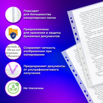 Папки-файлы перфорированные А4 ОФИСМАГ "Стандарт", КОМПЛЕКТ 100 шт., матовые, 30 мкм, 222095