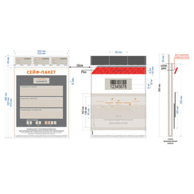 | Особенности | индивидуальный номер, карман для сопроводительных документов, красная сейф-лента с термоиндикацией, подсказ «Куда-Кому», штрихкод |