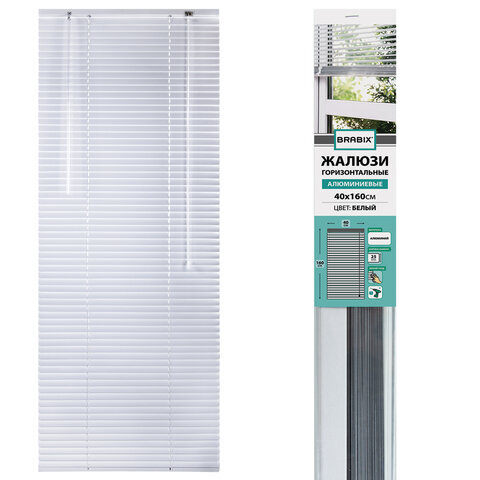 Жалюзи горизонтальные BRABIX 40х160 см, АЛЮМИНИЙ, цвет белый, 606030