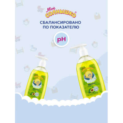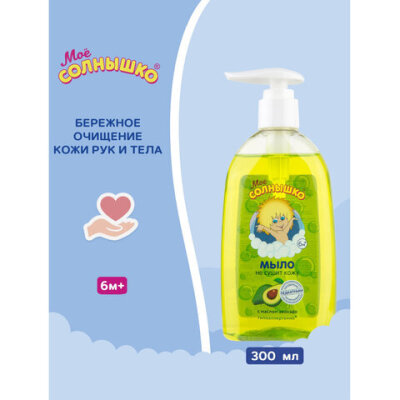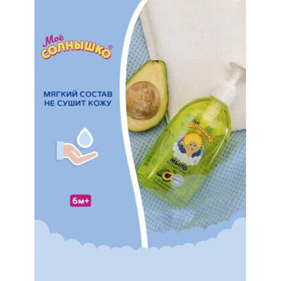 Мыло жидкое детское гипоаллергенное с маслом авокадо 300 мл, МОЕ СОЛНЫШКО, дозатор, 1701
