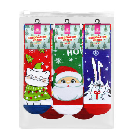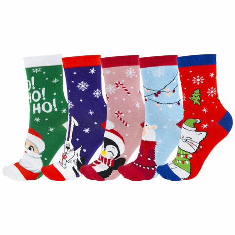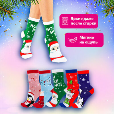 Новогодние носки НАБОР 5 пар с цветным принтом, размер 36-41, ЗОЛОТАЯ СКАЗКА, 592142