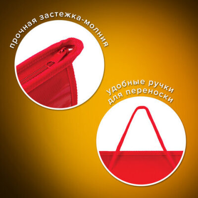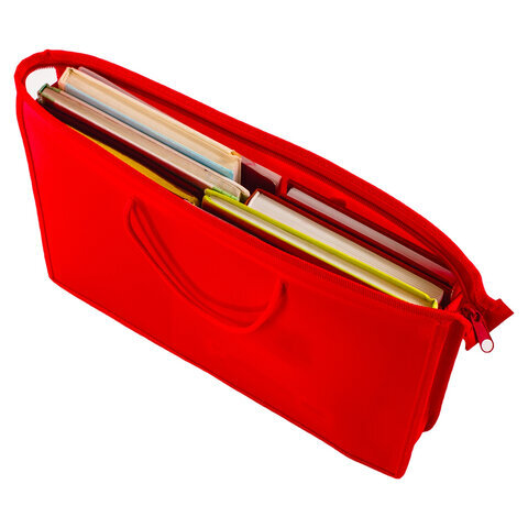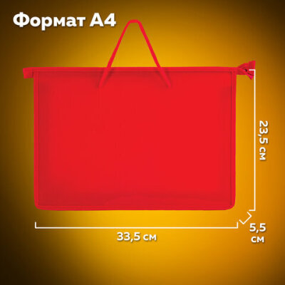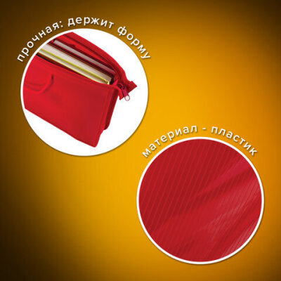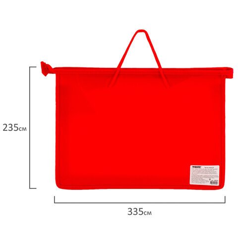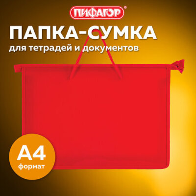 Папка на молнии с ручками ПИФАГОР, А4, 1 отделение, пластик, 55 мм, красная, 228234