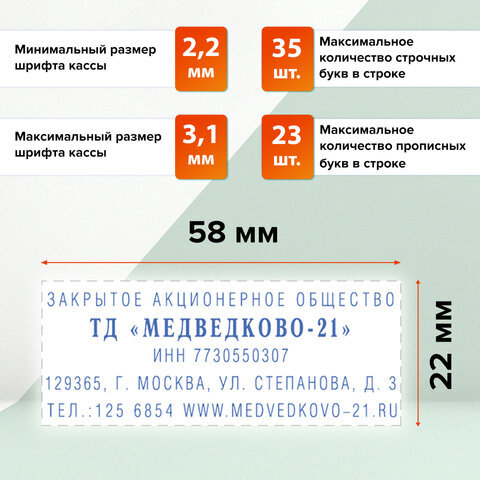 | Размер оттиска | 58х22 мм |