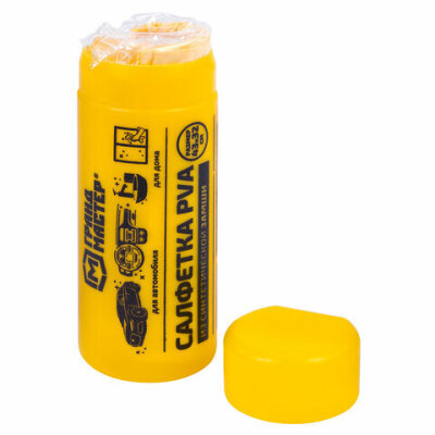 Салфетка синтетическая PVA-замша 43x32 см, в тубе, желтая, для авто, дома и офиса, ГРАНДМАСТЕР, 609975