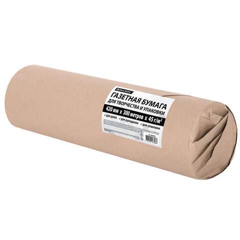 Бумага для творчества и упаковки, газетная, рулон 420 мм х 300 м, 45 г/м2, BRAUBERG, 665564
