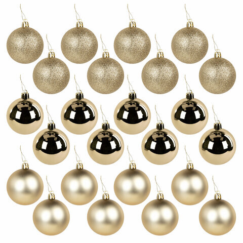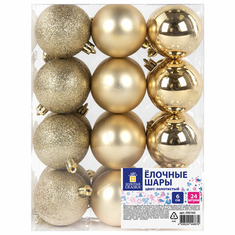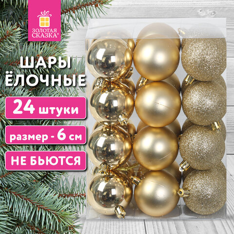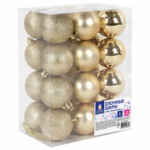 Шары ёлочные 24 шт., 6 см, "Trio", пластик, ЗОЛОТИСТЫЕ (глянец, матовый, глиттер), ЗОЛОТАЯ СКАЗКА, 592163