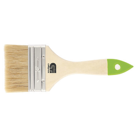 Кисть плоская из натуральной щетины, с деревянной ручкой, покрытой лаком. Предназначена для выполнения малярных работ на плоских поверхностях.