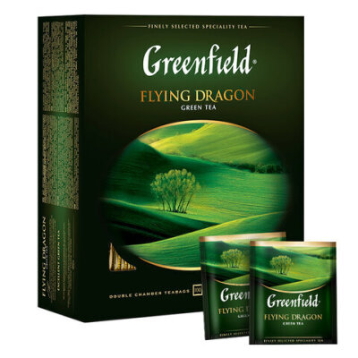 Чай GREENFIELD "Flying Dragon" зеленый, 100 пакетиков в конвертах по 2 г, 0585