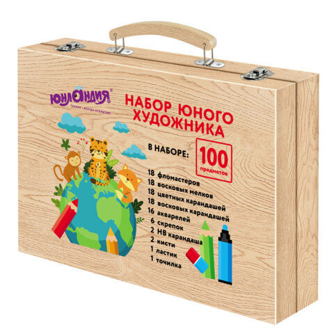 Набор юного художника ЮНЛАНДИЯ отлично подойдет для первых шагов в рисовании. В красочном кейсе есть все самые необходимые предметы для развития творческих способностей ребенка. Набор хорошо развивает усидчивость, воображение, образное мышление.