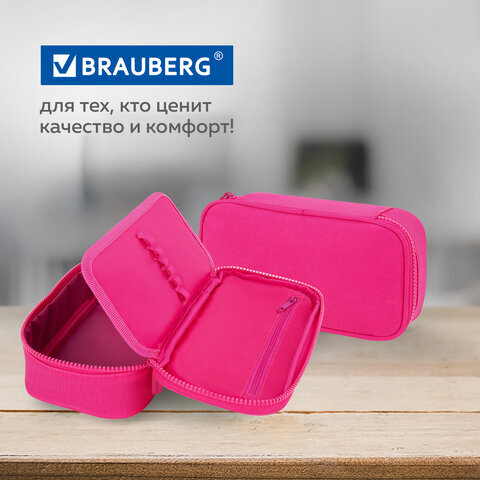 Пенал-косметичка BRAUBERG, 1 отделение, органайзер, полиэстер, 22х11,5x6 см, розовый, 272310
