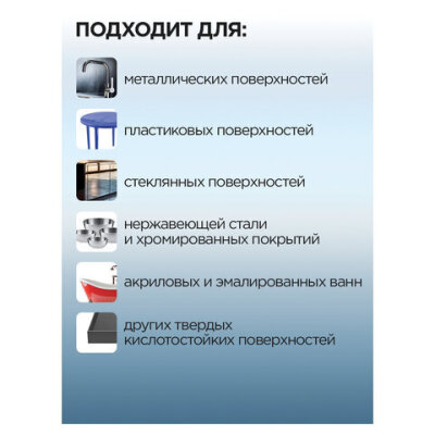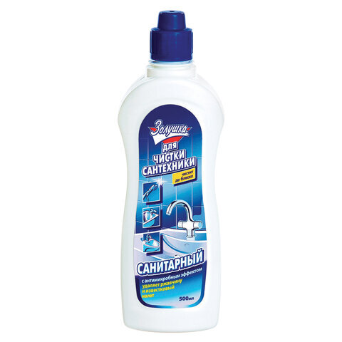 • Средство "Санитарный" ЗОЛУШКА для удаления известкового налета, ржавчины, остатков мыла и других специфических загрязнений в ванной комнате и на кухне.