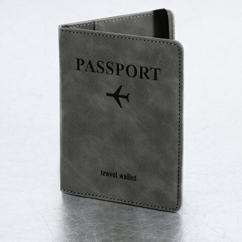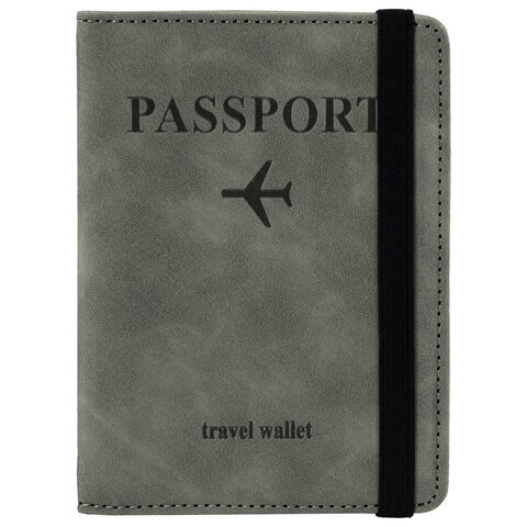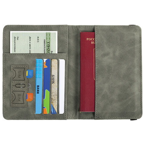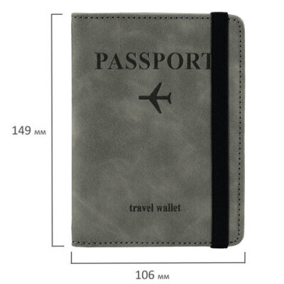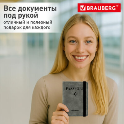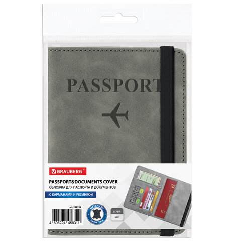 Обложка для паспорта и документов с защитой от считывания, 9 карманов, резинка, экокожа, серая, BRAUBERG, 238749