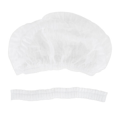 Шапочка "Шарлотта" белая двойная резинка, КОМПЛЕКТ 100 шт., спанбонд 10 г/м2, ОПТИТРЕЙД
