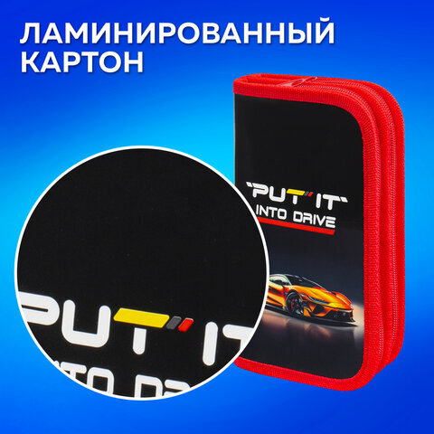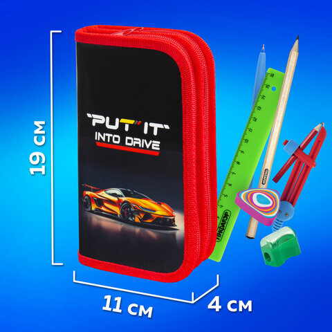Пенал ПИФАГОР, 2 отделения, ламинированный картон, 19х11 см, "Cool wheels", 272248