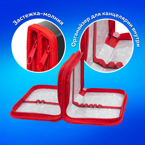 Пенал стандартного размера ПИФАГОР с двумя отделениями выполнен из ламинированного картона. Яркий дизайн. Удобные молнии с металлическим бегунком с трех сторон, прочные резинки для предметов. Вмещает до 25 предметов.