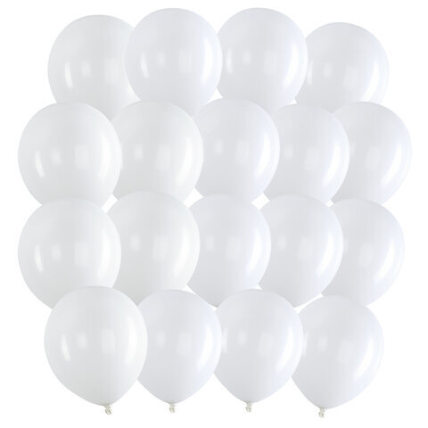 Шары воздушные 30 см, 100 штук, "ОДНОЦВЕТНЫЕ", белые, BRAUBERG KIDS, 591875