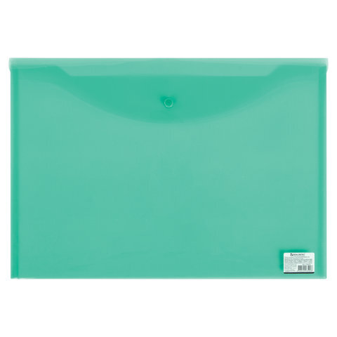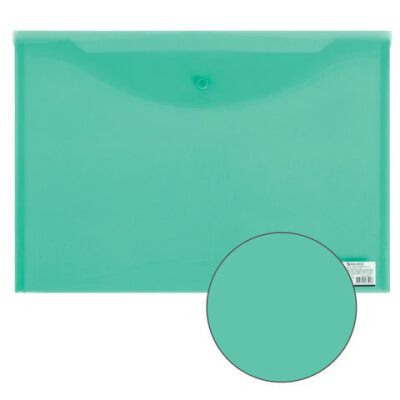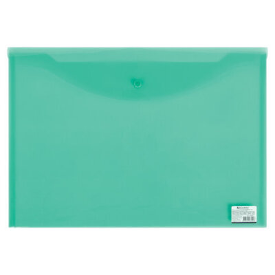 Папка-конверт с кнопкой БОЛЬШОГО ФОРМАТА (305х435 мм), А3, прозрачная, зеленая, 0,18 мм, BRAUBERG, 224033