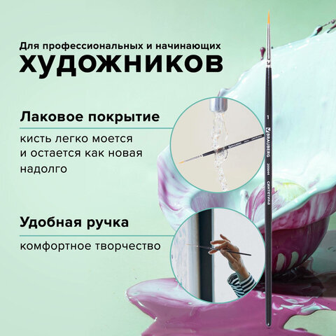 Художественная профессиональная синтетическая кисть BRAUBERG ART "CLASSIC" № 1 предназначена для работ густыми красками: гуашь, акрил, масло, темпера. Идеальна для водорастворимых масляных красок.