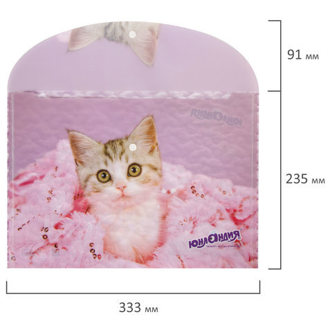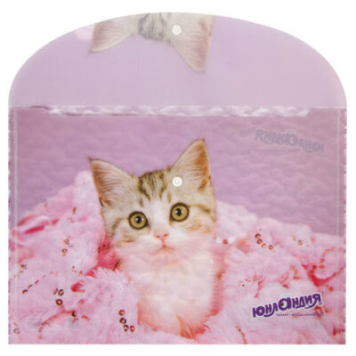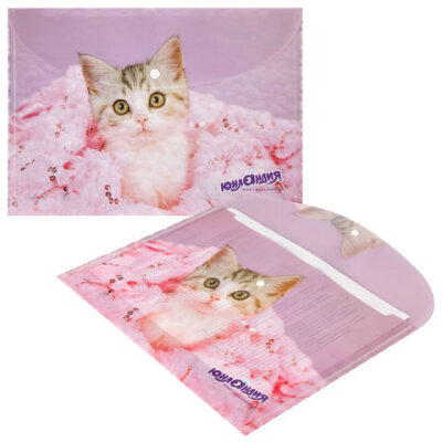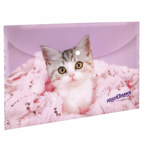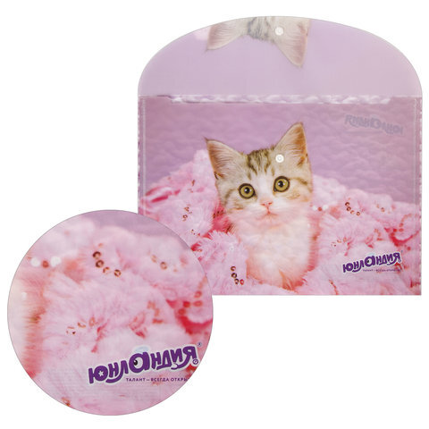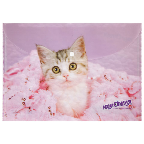 Папка-конверт с кнопкой ЮНЛАНДИЯ "Котенок", А4, 160 мкм, до 100 листов, цветная печать, 228049