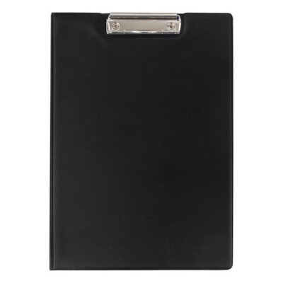Папка-планшет ОФИСМАГ, А4 (340х240 мм), с прижимом и крышкой, картон/ПВХ, РОССИЯ, черная, 225982