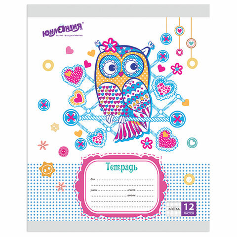 Тетрадь 12 л. ЮНЛАНДИЯ клетка, обложка картон, "СОВЯТА", 104918
