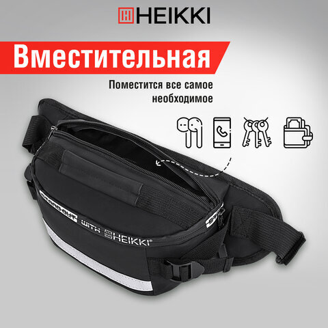 Сумка на пояс HEIKKI RIO (ХЕЙКИ), два отделения, регулируемый ремень, светоотражающий элемент, 36х9х13 см, 272618