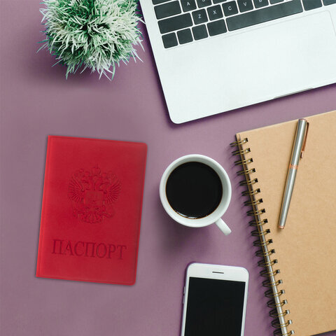 Обложка для паспорта, мягкий полиуретан, "Герб", красная, STAFF, 237612
