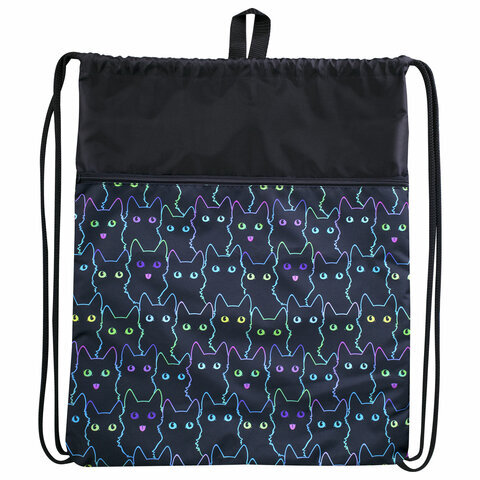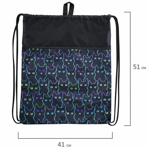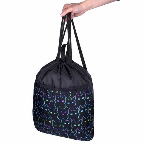 Мешок для обуви BRAUBERG БОЛЬШОЙ, с ручкой, карман на молнии, сетка, 49х41 см, "Cats", 271059