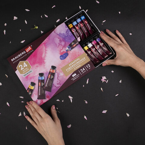 Акварель художественная в тубах НАБОР 24 цвета по 12 мл, BRAUBERG ART PREMIERE, 191767