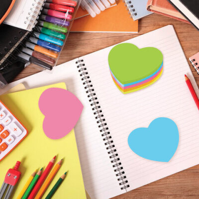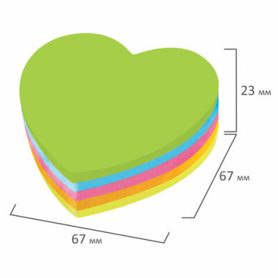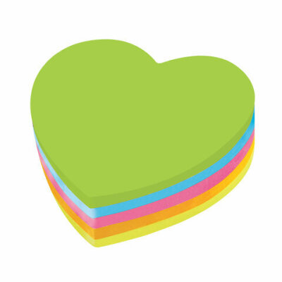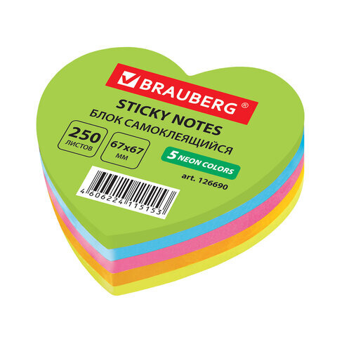 Блок самоклеящийся (стикеры), фигурный, BRAUBERG, НЕОНОВЫЙ "Сердце", 250 листов, 5 цветов, 126690