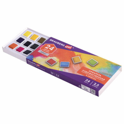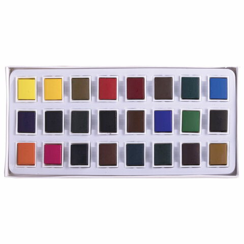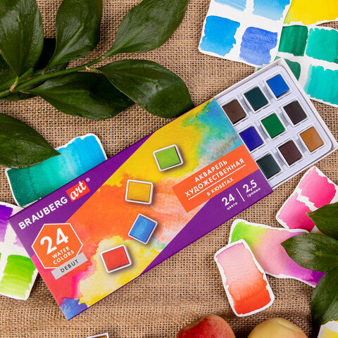 Акварель художественная в кюветах НАБОР 24 цвета по 2,5 г, BRAUBERG ART DEBUT, 191778