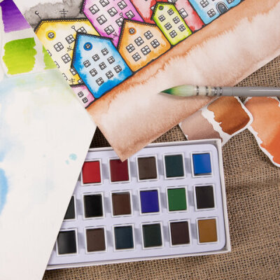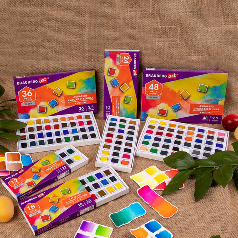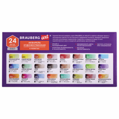 Художественная акварель профессионального качества в кюветах BRAUBERG ART DEBUT предназначена для живописи.
