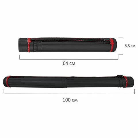 Тубус для чертежей телескопический, длина 64-100 см, формат А0, диаметр 8,5 см, с ремнем, черный, BRAUBERG, 271256