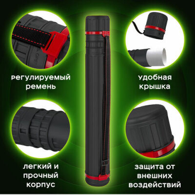 Телескопический (раздвижной) тубус BRAUBERG с регулируемой длиной корпуса и ремнем. Удобен для хранения и транспортировки чертежей и рисунков формата А0, А1, А2, А3, А4.