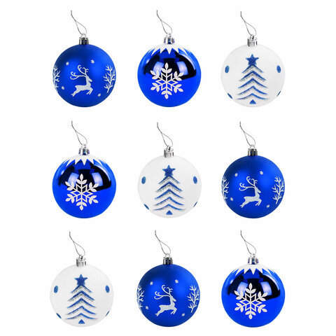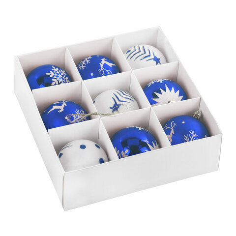 Шары ёлочные 9 шт., 8 см, "Русская Зима", пластик, цвет: синий/белый, ЗОЛОТАЯ СКАЗКА, 591987