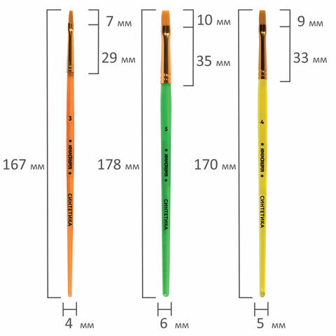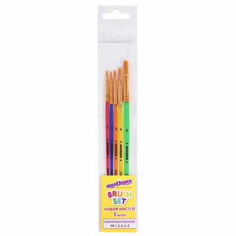 Кисти СИНТЕТИКА набор 5 шт. (плоские № 1, 2, 3, 4, 5), пакет с европодвесом, ЮНЛАНДИЯ, 201077