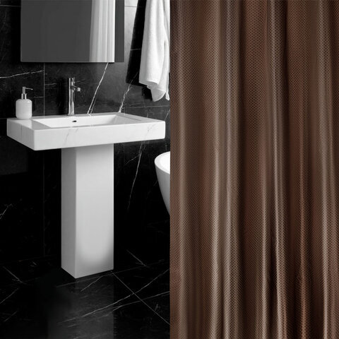 Шторка для ванной ПОЛИЭСТЕР, 180х200 см, кольца в комплекте, КОРИЧНЕВЫЙ БРИЛЛИАНТ, PRIMILA (ПРИМИЛА), 700097