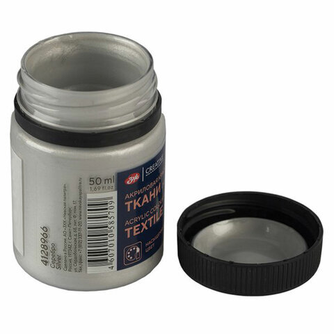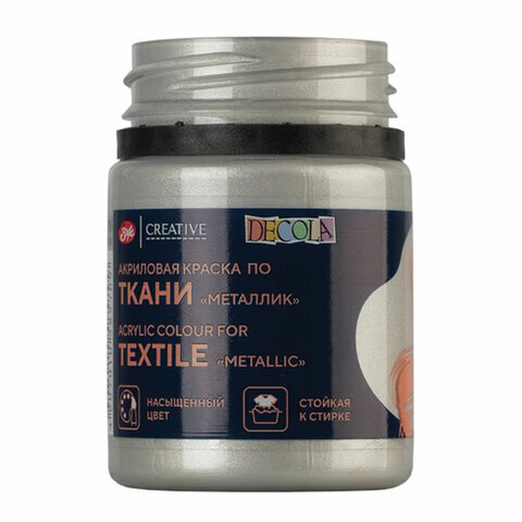 Краска по ткани акриловая "Декола", банка 50 мл, серебряная, Невская Палитра, 4128966